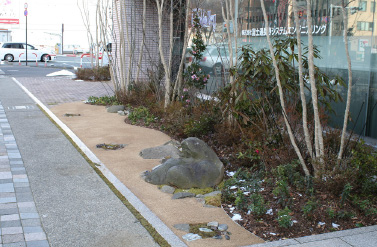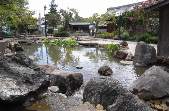 境内周辺 住宅地の雨水を「放生池」に集めビオトープ。日本庭園の伝統的な様式に従い、これを「放生池」とし、自然な水が育む生物多様性の池として完成しました。