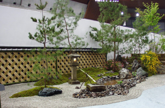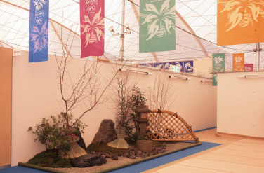 スポンサーテントの中に「松」「竹」「梅」の日本庭園コーナーを作りました。