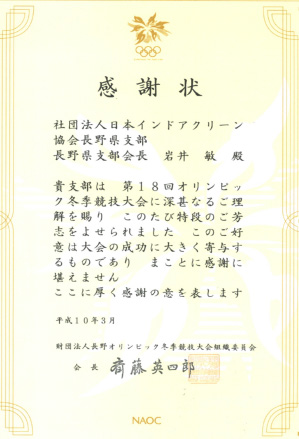 おらが園岩井敏に送られた感謝状