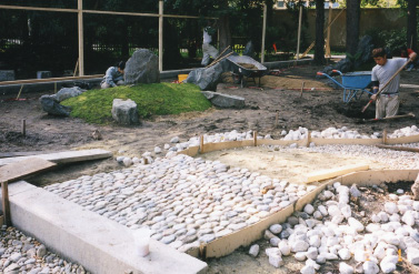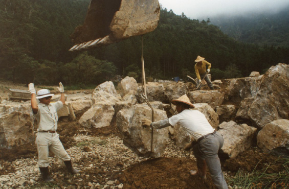 1993年から3年にわたり、台湾の山中に日本庭園を造りました。きっかけは、日本造園学会で出会った台湾人の設計者との出会い。日本庭園の設計図を見て、造園の基本を教える必要を感じました。 現地の地形、石、風倒木などの標高2000mの自然に溶け込む庭園を造るため、それから3年台湾に通い、造園指導をいたしました。日本に対し好感をもつ台湾の人々は、大変熱心に作業に当たっていただき、良いものができました。